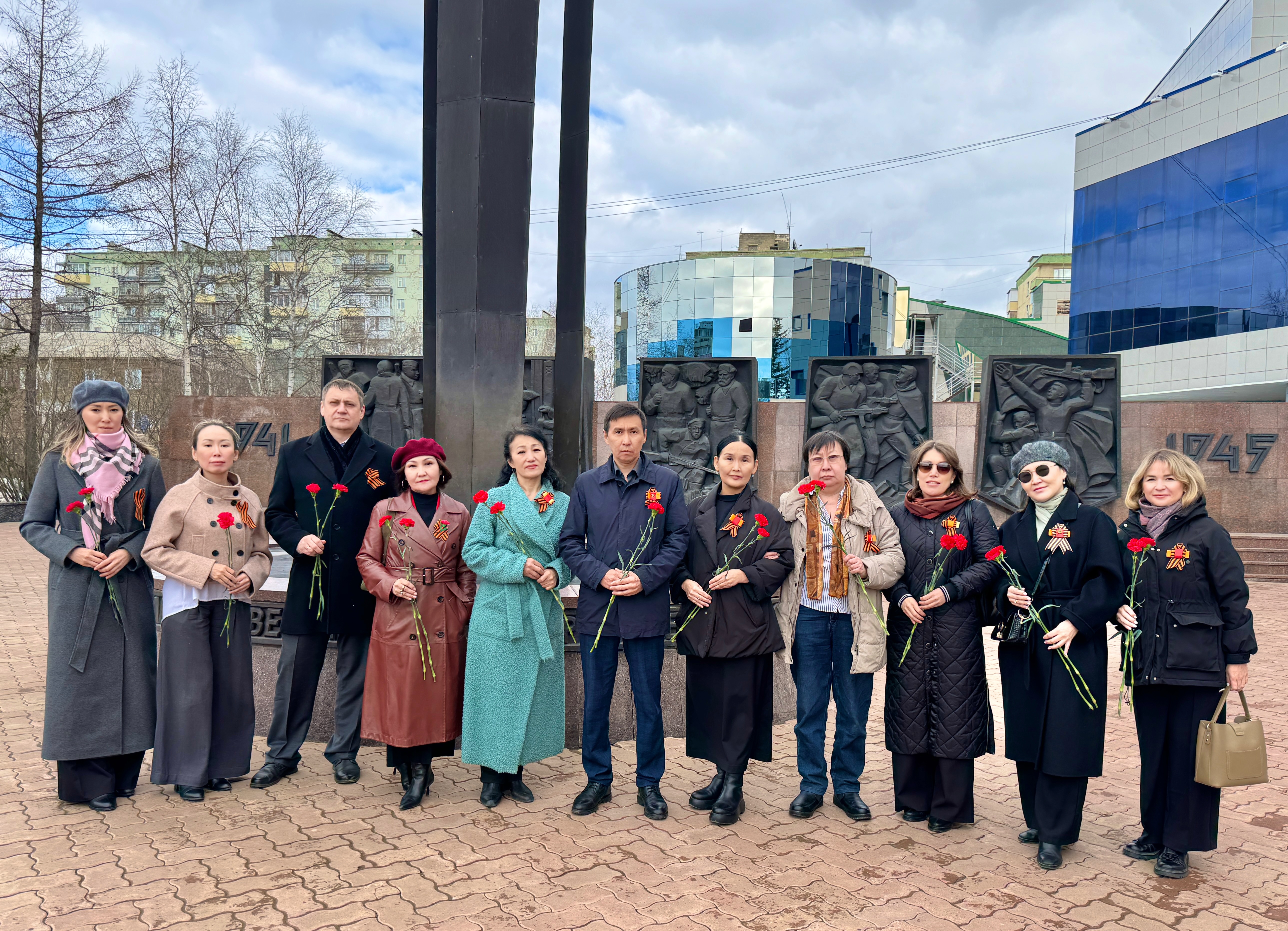 возложили цветы к вечному огню мемориального комплекса Площадь Победы в г. Мирном, к монументу «Павшим за